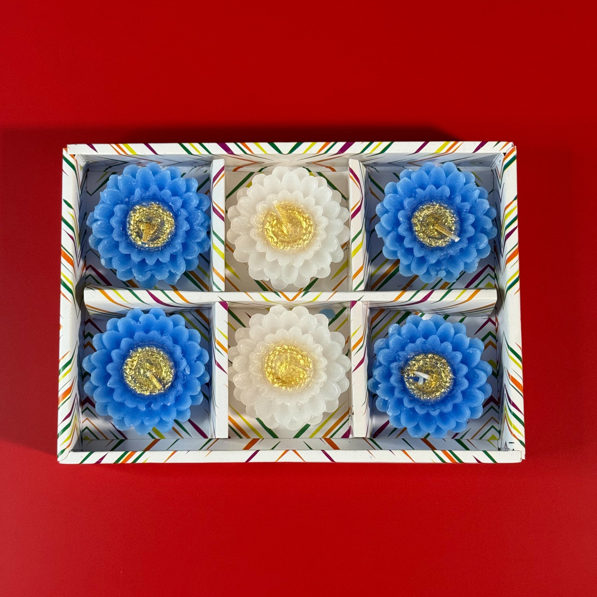 🌸 Pack of 6 premium floating candles (blue & white designs)